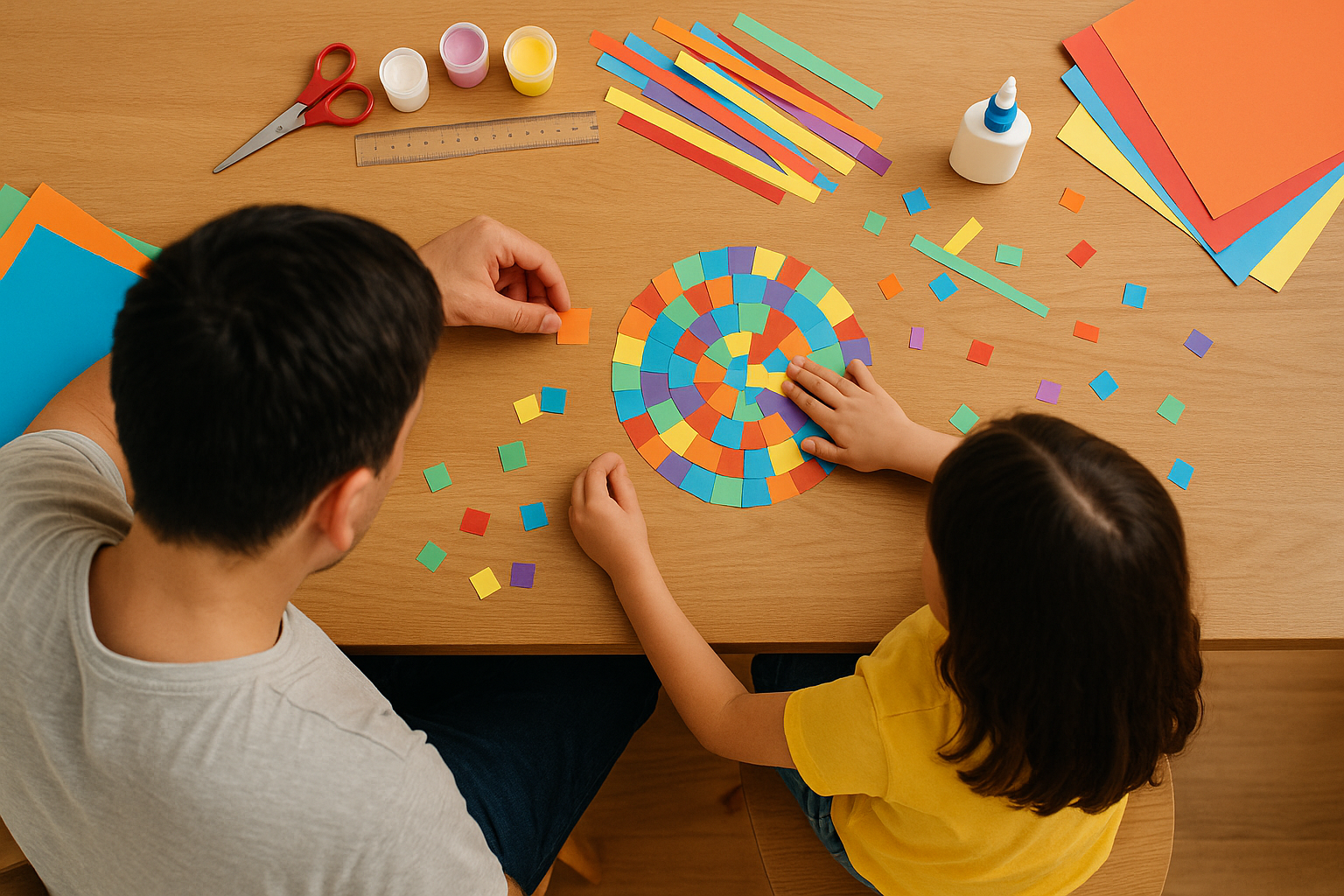 自分好みの模様パーツを入れて世界に一つだけの万華鏡を作る工作。光の反射と色の不思議を楽しく学べる。