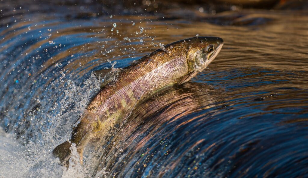海から川へ入り、流れに逆らい、ときには滝を跳び越えて産卵場所へ向かいます。